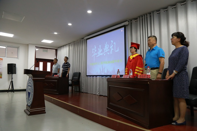 在庄严的国歌中,典礼拉开帷幕。岳秀萍经理作毕业致辞,代表全院师生向学业有成、即将告别母校、踏上人生新征途的2018届毕业生表示热烈的祝贺和美好的祝福,期盼同学们在未来的工作学习中,继承和发扬百年理工的优良传统,坚持终身学习,磨砺自身意志,雕琢个人品性,在实践中探寻真理,开辟属于自己的天地。