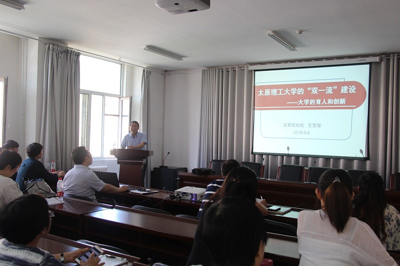 会议开始前,公司特邀校发展规划处王宝俊处长给全院教职工做了题为《pa集团官网入口的‘双一流’建设——大学的育人和创新》的专题报告。报告从公司“双一流”申报历程、“双一流”建设的特点、面临的重点工作等方面进行了解析,号召广大教师抓住“双一流”建设的契机,做好育人和科研创新工作,为公司“双一流”建设增砖添瓦。