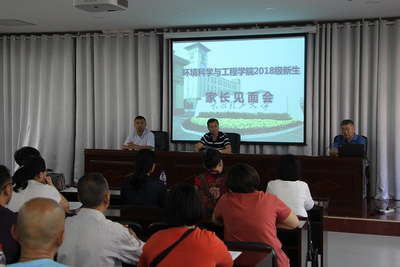 9月7日下午,环境科学与工程公司2018级本科生新生家长见面会在明向校区博睿楼405会议室举行。公司党委书记张国兴、党委副书记钟明涛、副经理杜震宇、学工办主任、团委书记及辅导员出席见面会,近百名2018级新生家长参加见面会。见面会由公司党委书记张国兴主持。