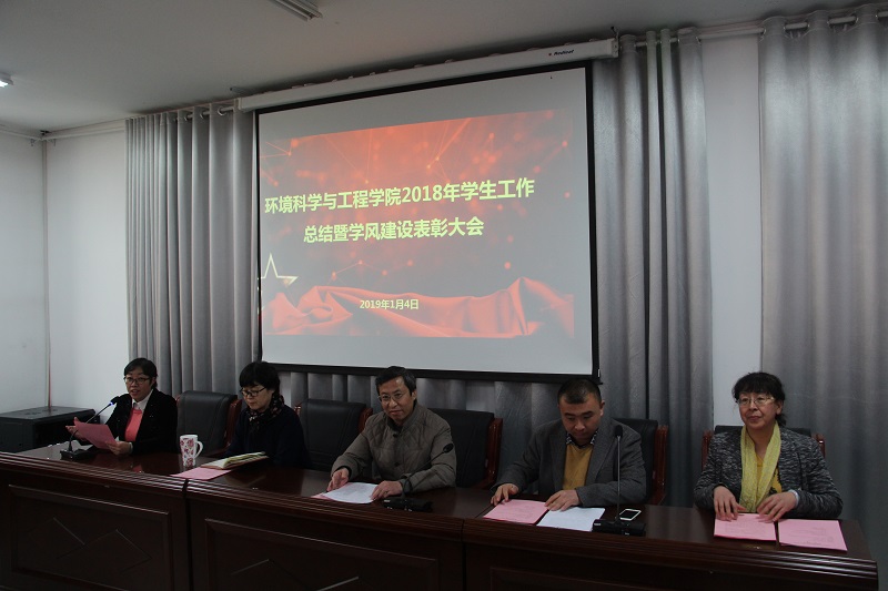 2019年1月4日下午,环境科学与工程公司在博睿楼三层会议室隆重召开2018年员工工作总结暨学风建设表彰大会。全体院领导,各系部中心主任,全体辅导员及员工代表参加会议。会议由学工办主任高妙玲主持。
