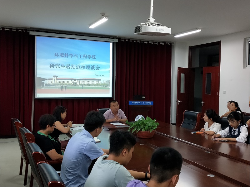9月10日下午,环境科学与工程公司在明向校区三楼会议室召开“2019年新学期研究生暑假返校座谈会”,公司党委副书记钟明涛、学工办主任高妙玲、辅导员徐莉及全体研究生党员、宿舍安全员参加会议。会议由学工办主任高妙玲主持。