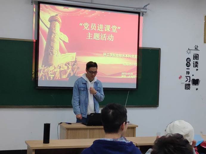 新中国成立七十周年之际,给排1702班长侯炜和公司第八届研究生支教团成员赵晋两名党员同志走进给排水1801班,向员工们介绍入党流程及有关事项,同时带领大家回顾新中国成立以来,在党的领导下我国各领域建设取得的巨大成就。点明党的旗帜是党的指导思想和行动指南,是中国共产党人初心和使命的集中彰显,由此激励员工与母校共奋进,与祖国共发展。