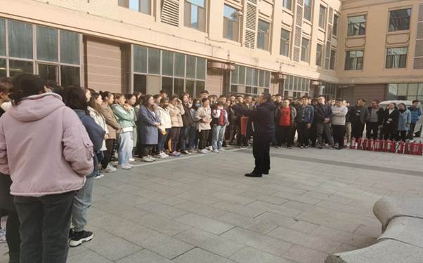 校保卫处副处长关宏战以近期高校爆炸、着火事件为例,通过分析事件发生的原因,讲述了诸如宿舍电器安全使用、实验室认真填写药品使用、水、电、值日登记事项、易燃易爆药品存放、以及发生意外火灾的应对措施等相关知识和要求,他强调:开展此次讲座和演练旨在提高员工的消防意识,掌握消防安全知识,增强自救互救能力,提高员工的安全意识,有效降低消防事故的发生概率。
