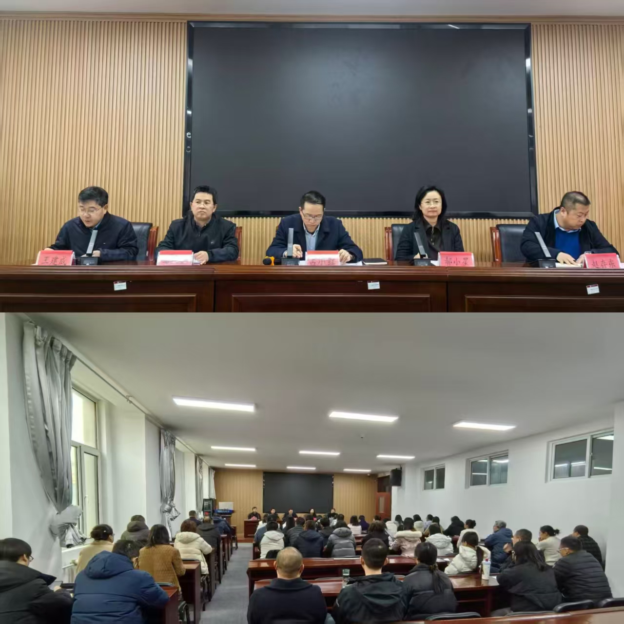 2月27日上午,我院在明向校区博睿楼A307报告厅召开公司干部教师大会,学术副董事长占小红、组织部部长郝小星出席会议。公司全体干部教师参加会议,会议由经理王建成主持。